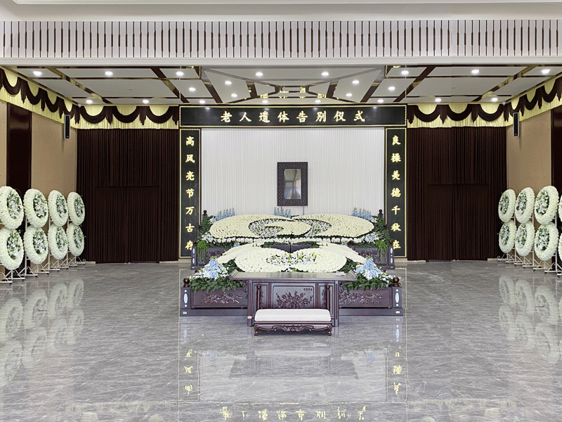遗体停放区(需距观众席≥2米)家属答谢区(配备座椅)挽联悬挂区(单幅尺寸不超过2m×1m)
