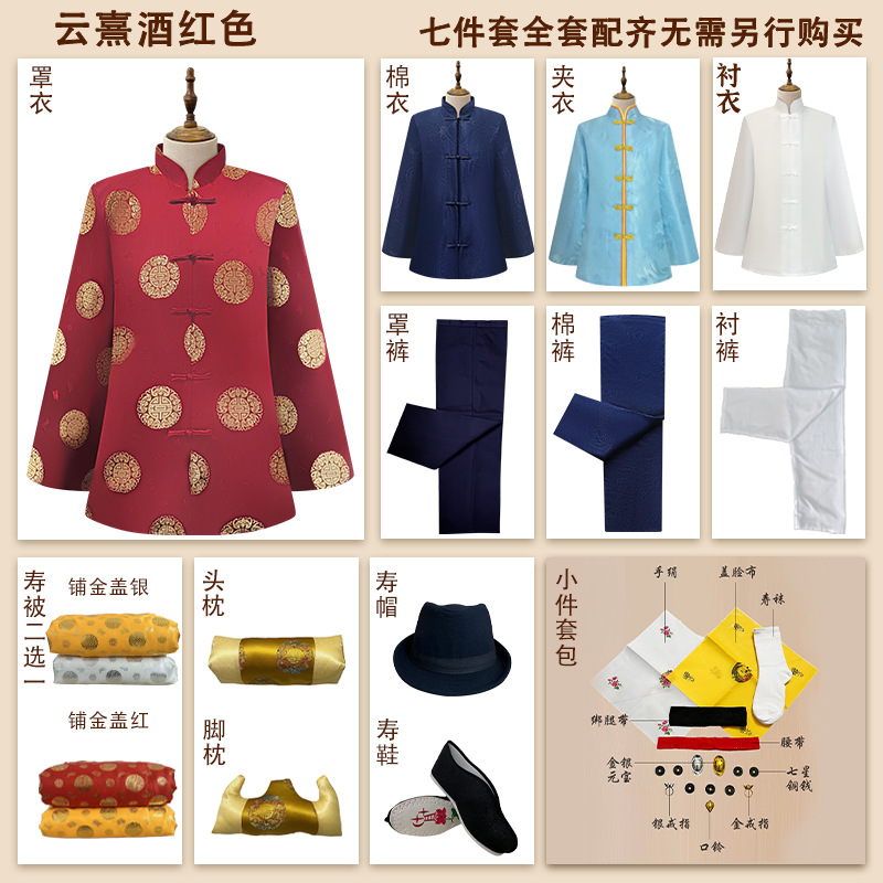 云熹寿衣七件套+配件-四领三腰高档寿衣