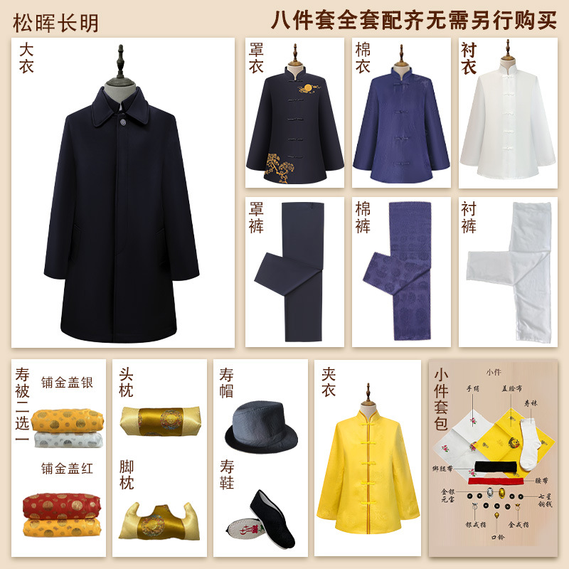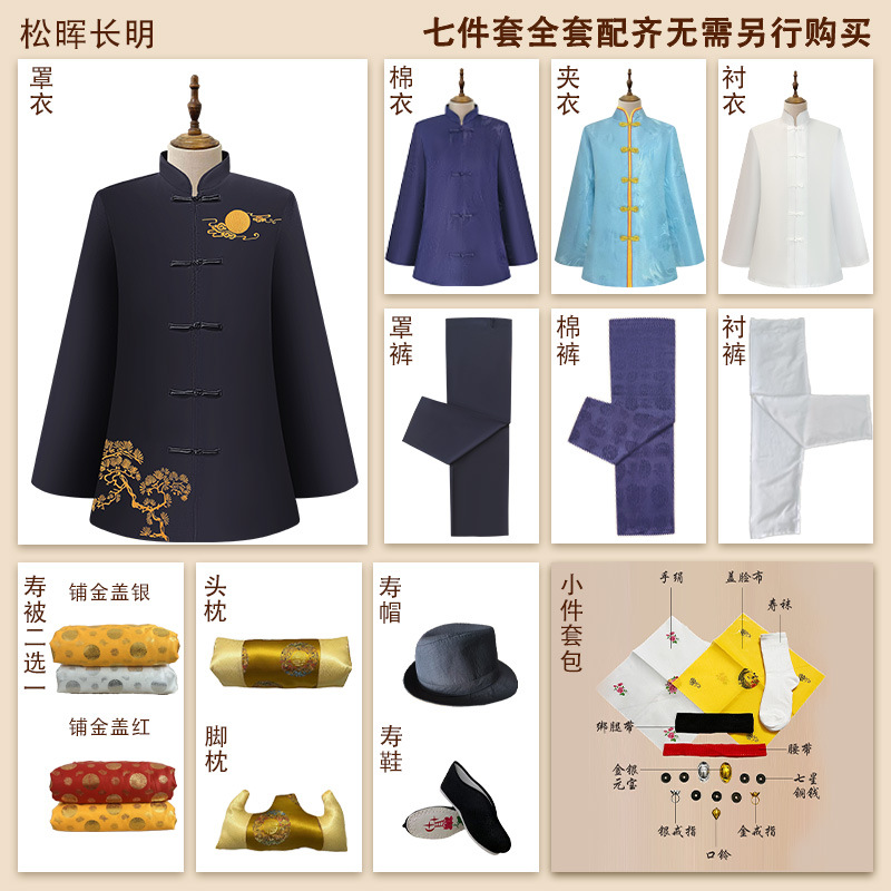 松晖长明-老人寿衣短款七件套+18样配件-四领三腰